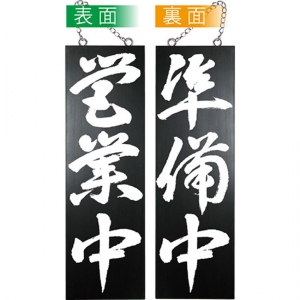 営業中看板 木製看板 木製サイン (大サイズ 黒) 感謝の気持ちで商い中 真心込めて仕度中 No.3965