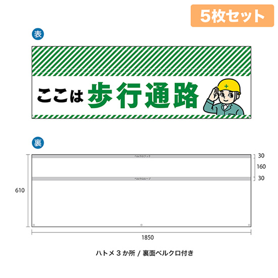 バリケード幕 (3枚セット) ここは歩行通路(イラスト) BA-18505006