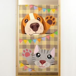• のれん 半間 暖簾 市松柄レース たちばな ベージュ-エンジ No.41868