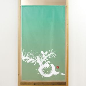• のれん 半間 暖簾 市松柄レース バケツにラブラドール No.41992