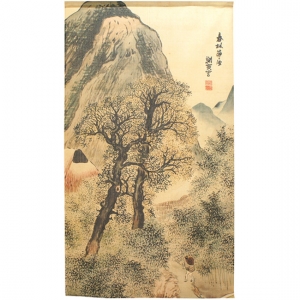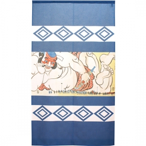 • のれん 半間 暖簾 市松柄レース 歌川広重 大はしあたけの夕立 02 No.42401