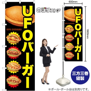 • のぼり旗 UFO BURGER (黒) ソース・具がこぼれにくくて食べやすい! No.50255