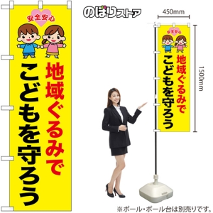 • のぼり旗 地域ぐるみでこどもを守ろう (黄) No.52571