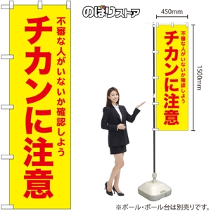 のぼり旗 不審な人や車を見たら迷わずに110番 (黄) No.52588 [小型サイズ]