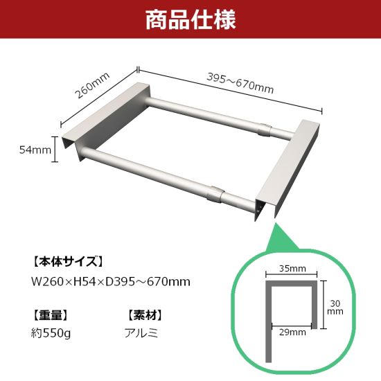 サイズ:W260×H54×D395~670mm