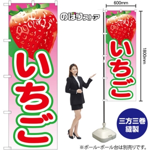 のぼり旗 いちご STRAWBERRY あま~い苺をどうぞ (赤・緑文字) No.58828