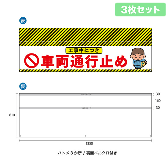 バリケード幕 (5枚セット) 工事中につき 車両通行止め BA-18505010