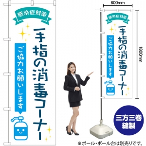 のぼり旗 手指の消毒コーナー 青 No.82249