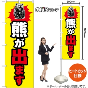 • のぼり旗 熊の出没に注意 (ヒグマ・黄・火花) CN-0297