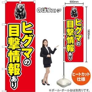 のぼり旗 熊に警戒 (ツキノワグマ・赤) CN-0326