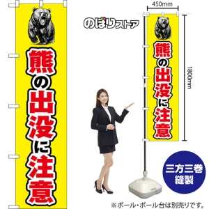 スマートのぼり 熊の目撃情報あり (ヒグマ・黄・火花) CNS-0289
