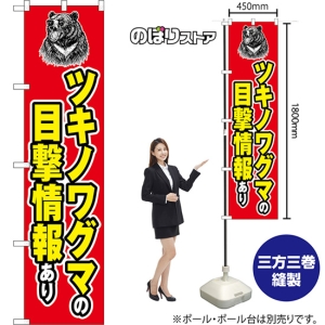 スマートのぼり 熊の出没に注意 (ツキノワグマ・赤・火花) CNS-0323