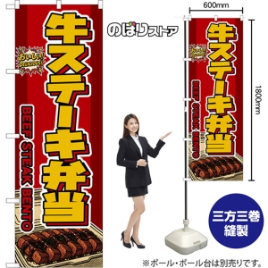 のぼり旗 牛ステーキ弁当 BEEF STEAK BENTO (赤文字・アメリカン) DN-0094