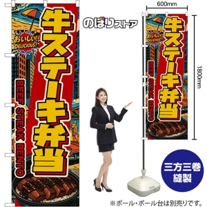 • スマートのぼり 牛ステーキ弁当 BEEF STEAK BENTO (黄文字・アメリカン) DNS-0093