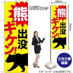 のぼり旗 クマが出ますご注意ください (黄) GNB-6950