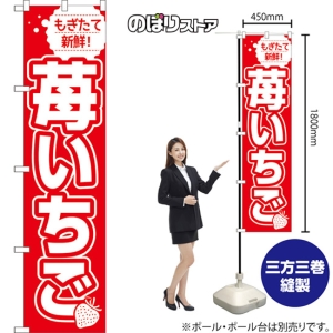 のぼり旗 採れたていちご もぎたて新鮮! (緑文字) JAS-992 [スマートサイズ] [スマートサイズ]