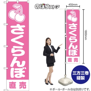のぼり旗 さくらんぼ おいしい (ピンク) NMBS-1423[スマートサイズ]