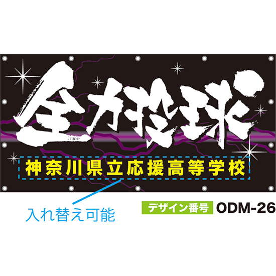 【別注】名入れ応援幕(横型) 全力投球 (黒) ODM-0025【受注生産】