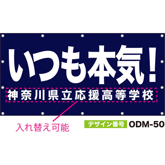 【別注】名入れ応援幕(横型) いつも本気! (紺) ODM-0049【受注生産】
