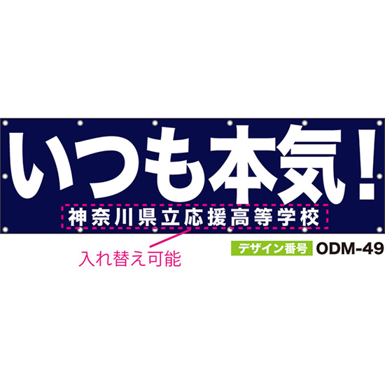 【別注】名入れ応援幕(四角型) いつも本気! (紺) ODM-0050【受注生産】
