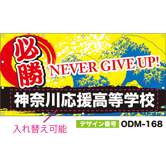 【別注】名入れ応援幕(横型) 必勝 NEVER GIVE UP! (黄) ODM-0167【受注生産】