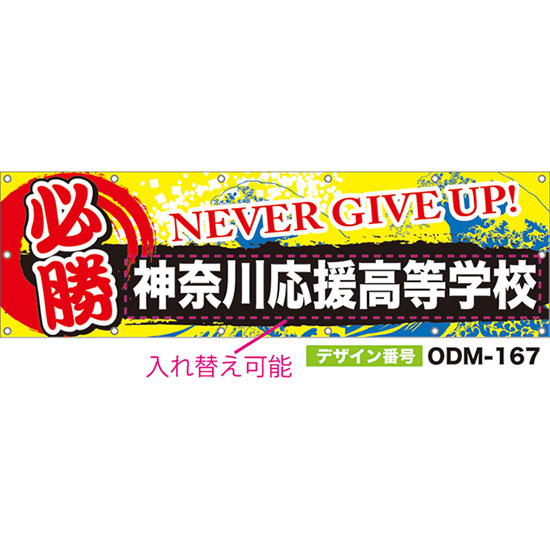 【別注】名入れ応援幕(四角型) 必勝 NEVER GIVE UP! (黄) ODM-0168【受注生産】