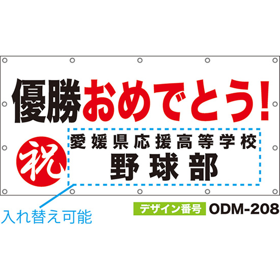 【別注】名入れ応援幕(横型) 優勝おめでとう! 祝 (白) ODM-0207【受注生産】