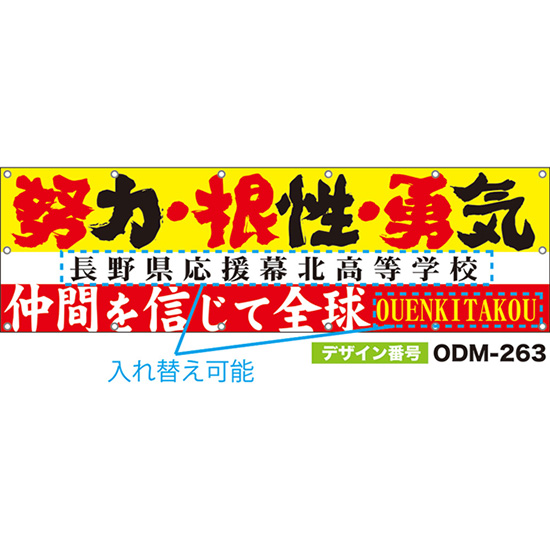 【別注】名入れ応援幕(四角型) 努力・根性・勇気 仲間を信じて全球 (黄・赤) ODM-0264【受注生産】