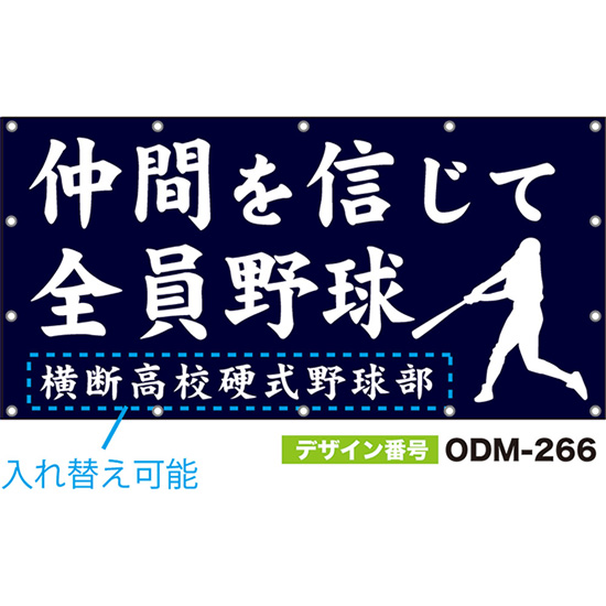 【別注】名入れ応援幕(横型) 仲間を信じて全員野球 (紺) ODM-0265【受注生産】