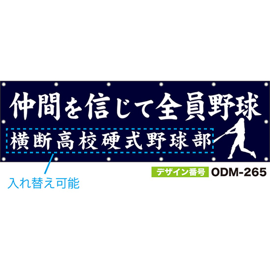 【別注】名入れ応援幕(四角型) 仲間を信じて全員野球 (紺) ODM-0266【受注生産】
