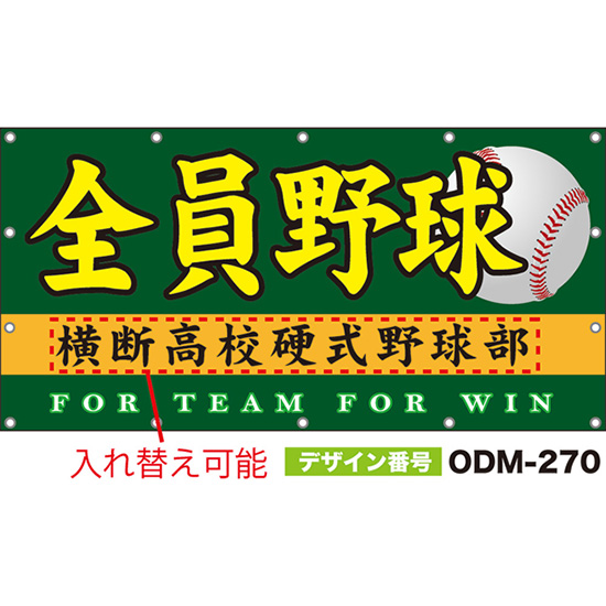 【別注】名入れ応援幕(横型) 全員野球 栄冠を目指せ!FOR TEAM FOR WIN (緑) ODM-0269【受注生産】