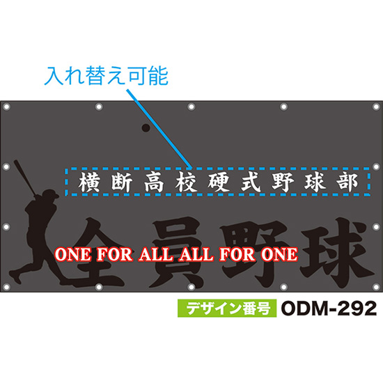 【別注】名入れ応援幕(横型) ONE FOR ALL ALL FOR ONE 全員野球 (グレー) ODM-0291【受注生産】