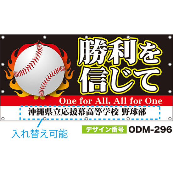 【別注】名入れ応援幕(横型) 勝利を信じて One for All, All for One (黒) ODM-0295【受注生産】