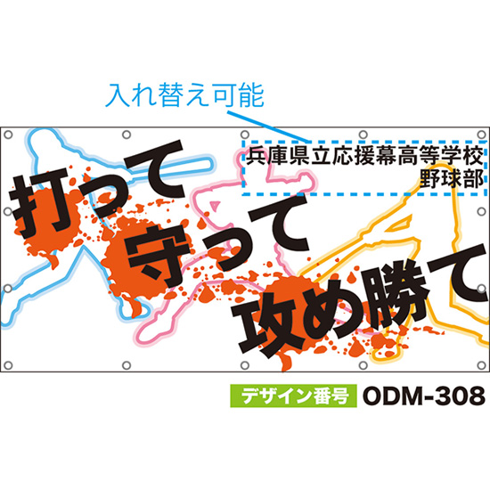 【別注】名入れ応援幕(横型) 打って守って攻め勝て (白) ODM-0307【受注生産】
