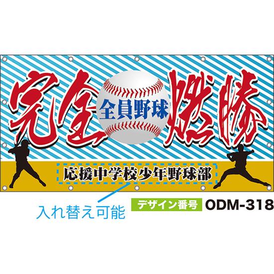 【別注】名入れ応援幕(横型) 完全燃勝 全員野球 (水色) ODM-0317【受注生産】