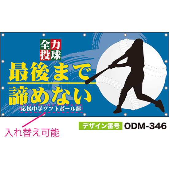 【別注】名入れ応援幕(横型) 最後まで諦めない 全力投球 (青) ODM-0345【受注生産】