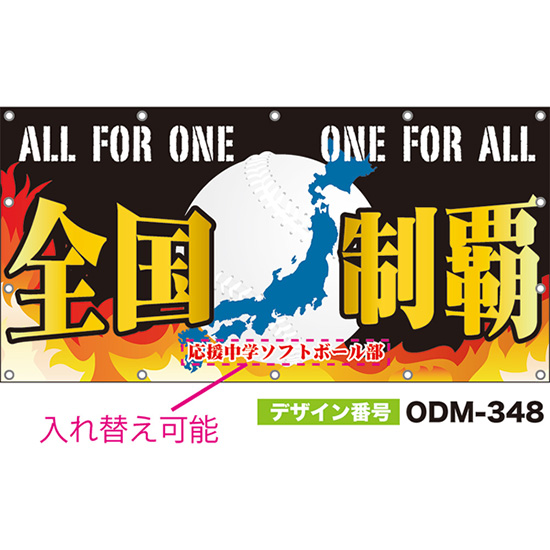 【別注】名入れ応援幕(横型) 全国制覇 ALL FOR ONE ONE FOR ALL (黒) ODM-0347【受注生産】