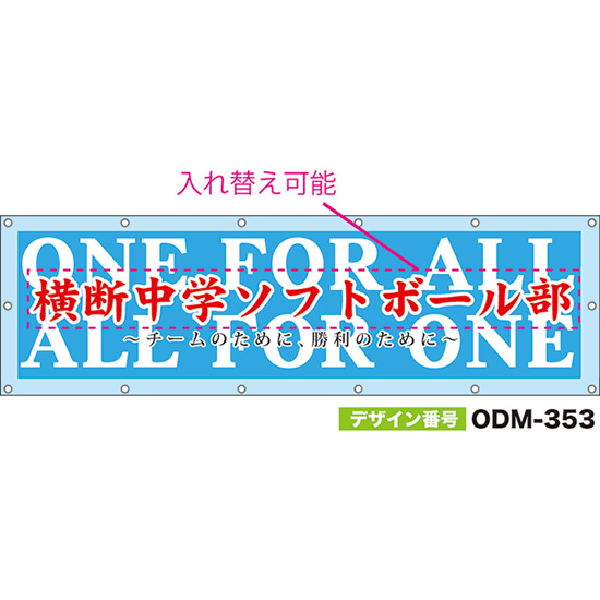 【別注】名入れ応援幕(四角型) ONE FOR ALL ALL FOR ONE チームのために、勝利のために (水色) ODM-0354【受注生産】
