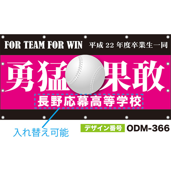 【別注】名入れ応援幕(横型) 勇猛果敢 FOR TEAM FOR WIN (ピンク) ODM-0365【受注生産】