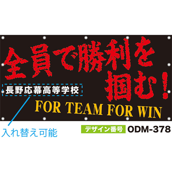 【別注】名入れ応援幕(横型) 全員で勝利を掴む! FOR TEAM FOR WIN (黒) ODM-0377【受注生産】