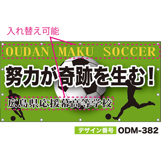 【別注】名入れ応援幕(横型) 努力が奇跡を生む! (緑) ODM-0381【受注生産】