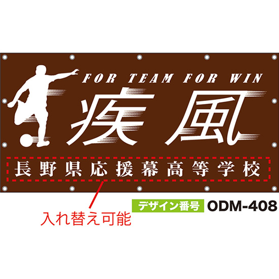 【別注】名入れ応援幕(横型) 疾風 FOR TEAM FOR WIN (茶) ODM-0407【受注生産】