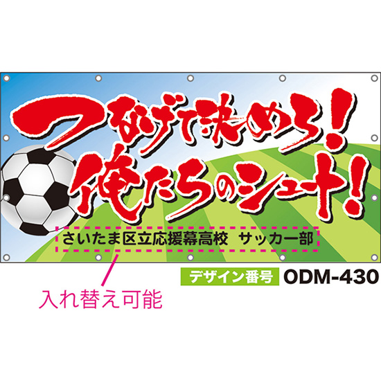 【別注】名入れ応援幕(横型) つなげて決めろ!俺たちのシュート! ODM-0429【受注生産】