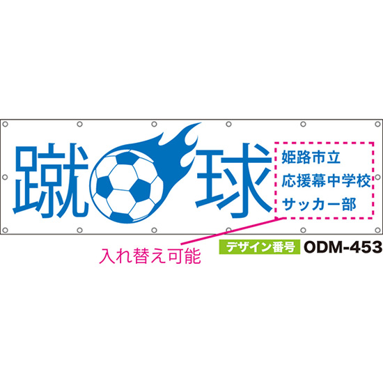 【別注】名入れ応援幕(四角型) 蹴球 (白・青) ODM-0454【受注生産】