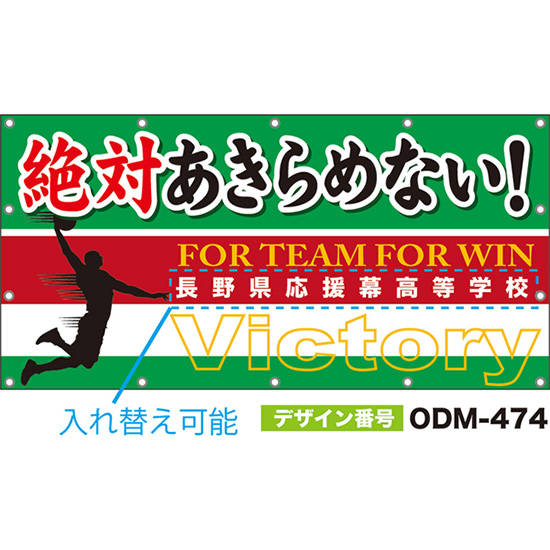 【別注】名入れ応援幕(横型) 絶対あきらめない!Victory FOR TEAM FOR WIN (緑) ODM-0473【受注生産】
