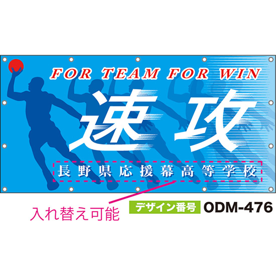 【別注】名入れ応援幕(横型) 速攻 FOR TEAM FOR WIN (水色) ODM-0475【受注生産】