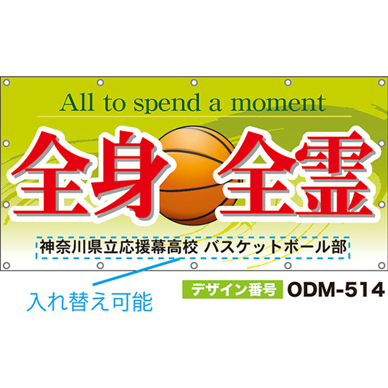 【別注】名入れ応援幕(横型) 全身全霊 All to spend a moment (緑) ODM-0513【受注生産】