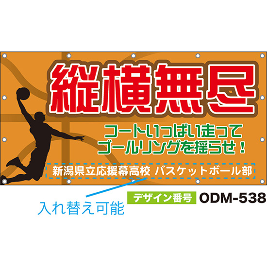 【別注】名入れ応援幕(横型) 縦横無尽 コートいっぱい走ってゴールリングを揺らせ! (橙) ODM-0537【受注生産】