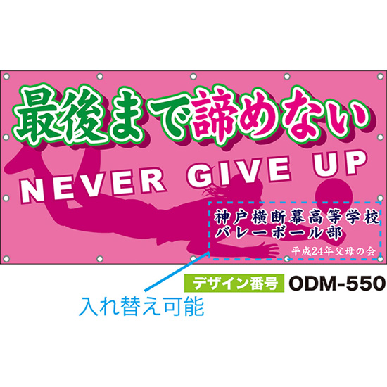 【別注】名入れ応援幕(横型) 最後まで諦めない NEVER GIVE UP (ピンク) ODM-0549【受注生産】