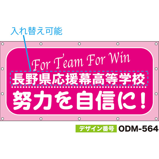 【別注】名入れ応援幕(横型) 努力を自信に! For Team For Win (ピンク) ODM-0563【受注生産】
